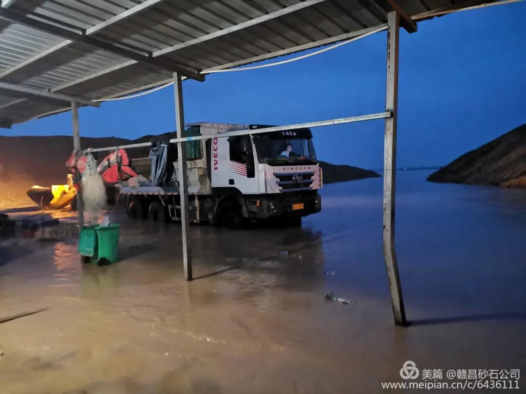 在地磅無法工作的情況下,發(fā)貨員一直站在水中指揮記錄著車輛運輸情況,公司各部門人員全力支援一線。截止2020年7月11日8時,楊柳洲經營點共向新建區(qū)發(fā)送礫石87車,約4350噸。