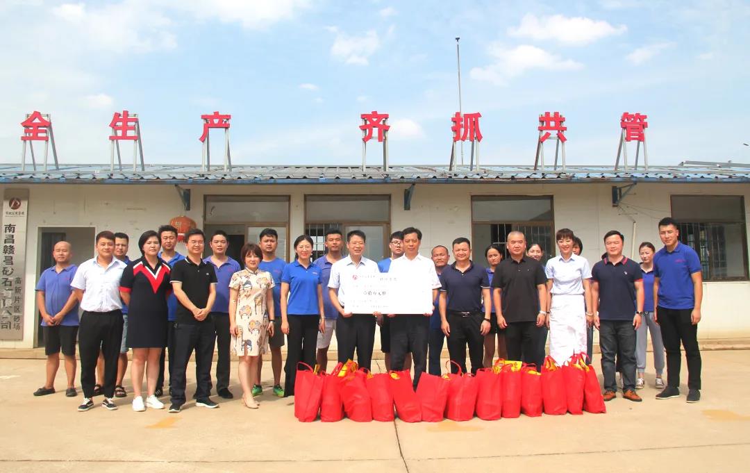 8月7日,市政公用集團黨委副書記、總經(jīng)理萬義輝,市政公用集團黨委委員、副總經(jīng)理郭曉慶,市政公用集團工會副主席徐志斌等領(lǐng)導(dǎo)一行,來到了因汛期受災(zāi)嚴重的南昌贛昌砂石有限公司高新尤口砂場及配送站進行防汛高溫慰問,市政公用集團綜合部部長易飛,市政公用集團工會辦公室主任吳瑕等相關(guān)同志陪同。市政公用集團黨委委員,贛昌砂石公司黨總支部書記、董事長劉順保,公司常務(wù)副總經(jīng)理朱鳳,總經(jīng)理助理、工會主席胡蓉,公司副總工程師、配送服務(wù)中心負責(zé)人饒燕等同志參加慰問活動。