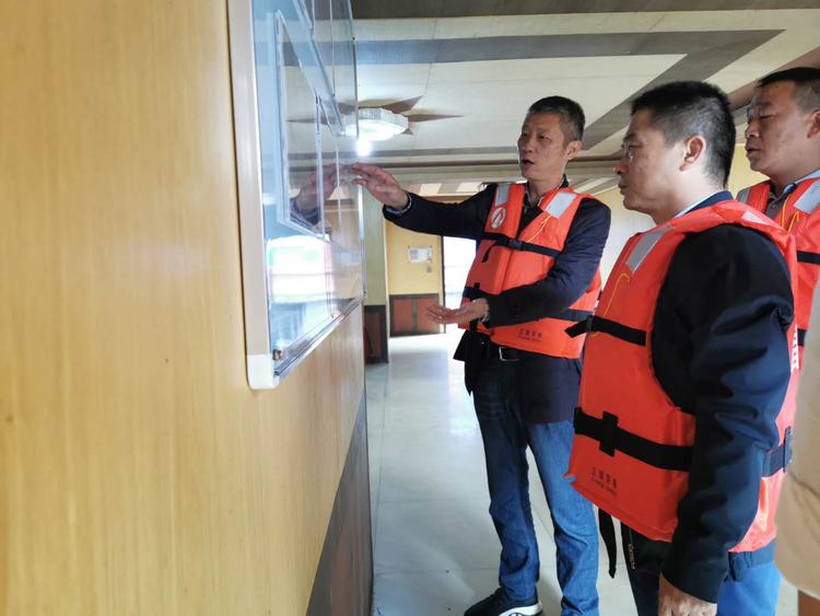 首先,生產(chǎn)部負(fù)責(zé)人熊志向陳鴻詳細(xì)介紹了《船舶作業(yè)安全管理要求》及《安全生產(chǎn)監(jiān)管員崗位職責(zé)》的落實(shí)情況。隨后,陳鴻一行登上采砂船,對(duì)現(xiàn)場(chǎng)作業(yè)設(shè)施的安全措施、人員勞保用品保障情況及采區(qū)作業(yè)信息欄進(jìn)行了詳細(xì)檢查。